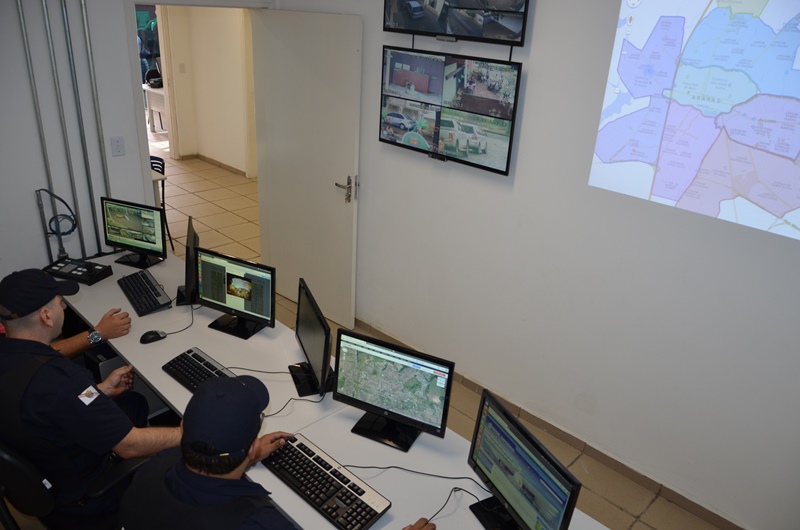As imagens são exibidas em monitores e o local conta ainda com dois telões, onde é projetado o mapa com a localização em tempo real das viaturas da GM, obtida por meio do sistema GPS.