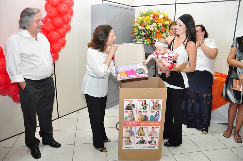 Durante o lançamento, a jornalista Talita Carpini, acompanhada da filha Beatrice, aproveitou para fazer a primeira doação para a campanha: uma caixa com roupas da bebezinha, que serão encaminhadas às mães carentes.