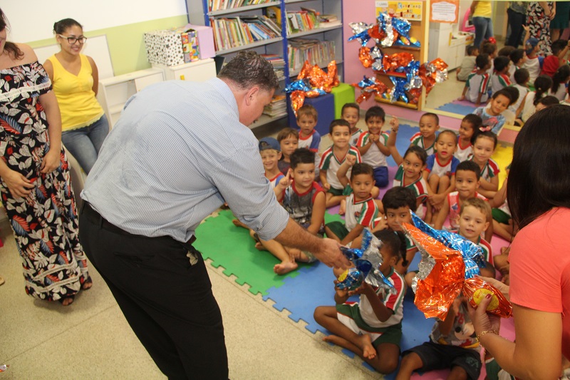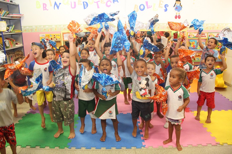 Nesta quinta-feira (13), a Prefeitura distribuiu cerca de 24 mil ovos de páscoa. Cada aluno das redes municipal e estadual de ensino ganhou um ovo de 120 gramas.