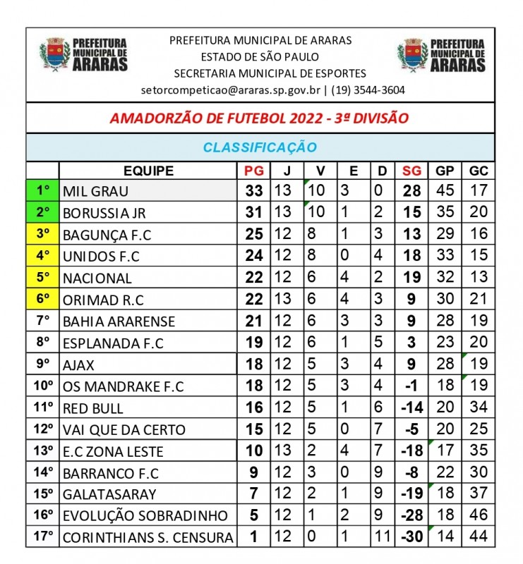 No próximo domingo (11), acontece à disputa das quartas de final para os seis primeiros colocados da primeira e da segunda divisão, os jogos vão ser disputados no Estádio Municipal “Joel Fachini” (Comercial).