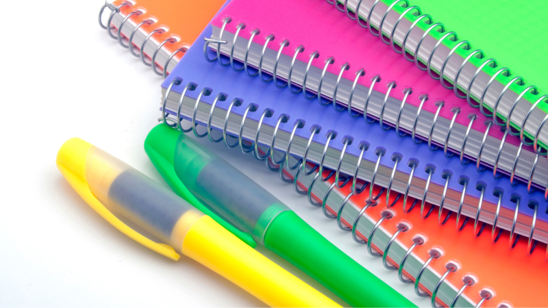Caderno pautado, caderno de desenho, caixa de massinha de modelar, cola bastão, caixa de lápis de cor, caixa de caneta hidrocor, lápis grafite, borracha, apontador, marca texto amarela e verde, estojo.
