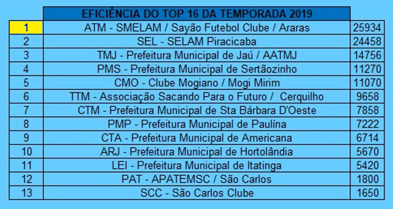 No TOP 16, etapa que reúne os melhores atletas por categoria e nível técnico, Araras somou 25.934 pontos - 1.476 a mais do que Piracicaba, campeã da Liga