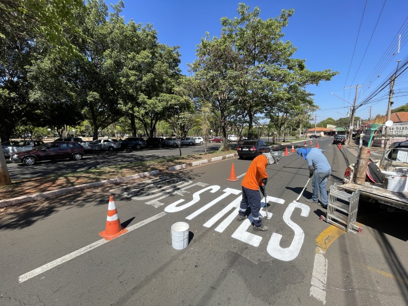 A sinalização horizontal inclui as faixas de pedestres, faixas de retenção e indicativos de parada obrigatória. “A manutenção é necessária e benéfica pois garante um trânsito mais seguro”, disse o diretor do Demutran, Inspetor Cristiano Rogério Barbosa. Por conta do Dia de Finados, celebrado em 2 de novembro, o Departamento também trabalha na área próxima ao Cemitério Municipal. “A equipe da Prefeitura faz a pintura durante o dia e a empresa terceirizada à noite, diminuindo os impactos no trânsito”, explica.