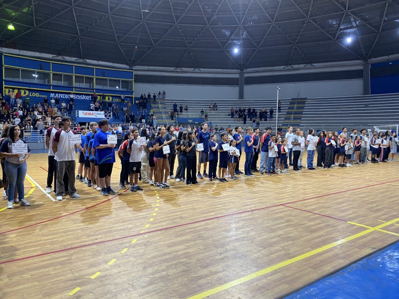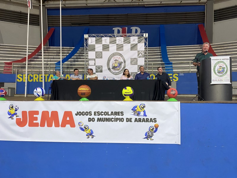 A cerimônia de abertura do JEMA (Jogos Escolares do Município de Araras) 2026 aconteceu na noite de quarta-feira (8) no Ginásio de Esportes “Nelson Rüegger”, reunindo alunos e professores das 22 escolas participantes, além de autoridades do município.